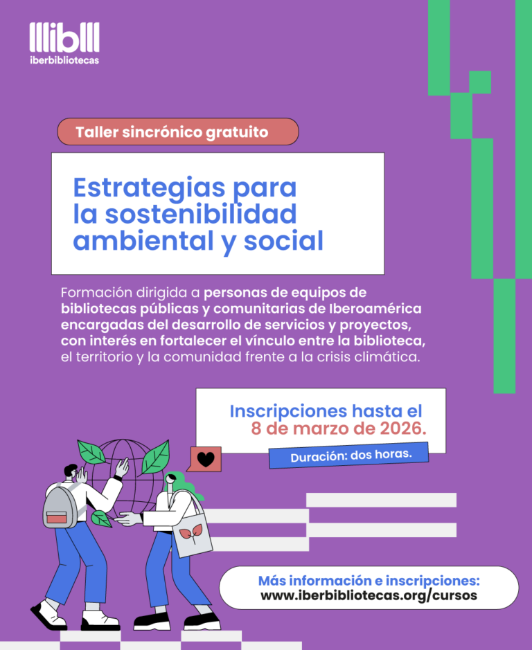 Formación dirigida a personas de equipos de bibliotecas públicas y comunitarias de Iberoamérica encargadas del desarrollo de servicios y proyectos, con interés en fortalecer el vínculo entre la biblioteca, el territorio y la comunidad frente a la crisis climática. Podrán inscribirse personas pertenecientes a equipos de bibliotecas públicas y comunitarias de los países y ciudades miembro de Iberbibliotecas: Brasil, Chile, Colombia, Costa Rica, Ecuador, El Salvador, España, México, Panamá, Perú, y Medellín (Colombia) y Quito (Ecuador).